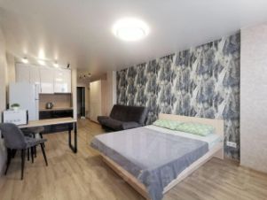 Стильная и уютная студия рядом с ТЦ Космопорт, Ашан, Леруа Мерлен. Комфортное размещение до 4 гостей, для проживания есть все необходимое: кровать 160*200, диван-кровать, телевизор (смарт тв), wi-fi, кондиционер, холодильник, микроволновая печь, варочная панель, духовой шкаф, электрический чайник, вся посуда (тарелки, столовые приборы, кастрюля, сковородка), фен, утюг, гладильная доска, сушилка, стиральная машина, средства личной гигиены, бытовые моющие средства, постельное белье, полотенца. После выезда каждого гостя проводят влажную уборку с дезинфекторами. При длительном заселении уборка каждые 5 суток. Апартаменты не сдаются для проведения вечеринок и мероприятий. При заселении необходим паспорт и залог, который возвращается при условии соблюдении