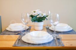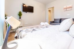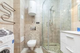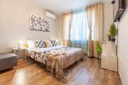 Для проживания есть все необходимое: двуспальная кровать, удобный раскладной диван, вся бытовая техника, SMART TV. Кухня оснащена холодильником, электроплитой с вытяжкой, электрическим чайником, микроволновой печью. Ванная комната оборудована стиральной машиной, феном, средствами личной гигиены. Также можно воспользоваться утюгом, гладильной доской и сушилкой для белья.