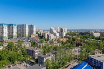 Роскошный панорамный вид с 20го этажа, сочетающий в себе "романтику мегаполиса" и "Волжских красот".