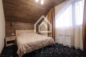 В коттедже: просторный холл с камином, объединенный с кухонной зоной, бильярдная комната, три спальные комнаты, в каждой из которых есть двуспальная кровать, вместительная сауна с необычным бассейном — одна часть бассейна находится в доме, вторая на открытом воздухе (работает в летнее время).