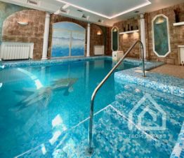 В цокольном этаже расположен бильярд, комната отдыха, сауна с бассейном с гидромассажем.