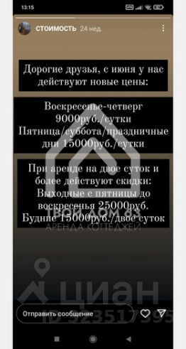 Обратите внимание, после подтверждения бронирования, и внесения 15% Циан, необходимо внести дополнительно 50% по договору. Договор предоставляется в электронном виде. Все подробности можно обсудить в сообщениях. Если вас что то не устроит можно будет отменить бронирование или рассмотреть аналогичные варианты.