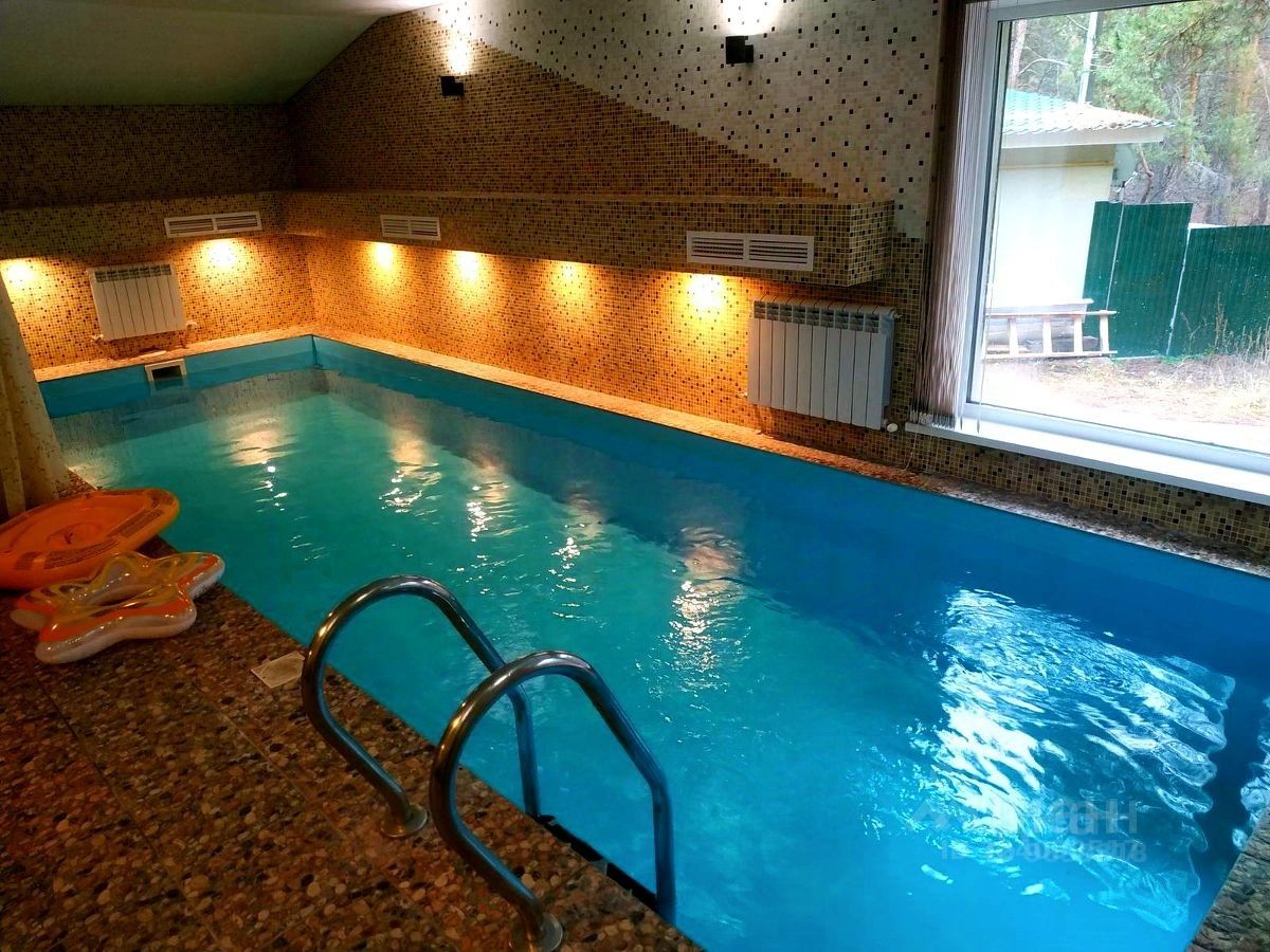 На 1 этаже: гостиная с камином и панорамными окнами, оборудованная всем необходимым кухня, 3 спальни, санузел с душевой кабиной. Баня, бассейн 7,5х2,5 м с подогревом, выход на террасу.
