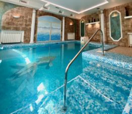 В цокольном этаже расположен бильярд, комната отдыха, сауна с бассейном с гидромассажем.