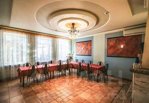 На первом этаже банкетный зал на 30 человек, музыкальная аппаратура, ТВ, кондиционер, караоке. Отличная европейская кухня и качественное обслуживание- отлично подходит для проведения свадеб и корпоративов. Так же на первом этаже располагается уютная комната отдыха, где можно поиграть в шахматы.