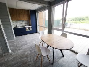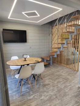 На 1 этаже: гостиная с музыкальной аппаратурой, телевизором и столом на 6 человек, совмещенная с кухней, санузел с душем, выход на веранду.