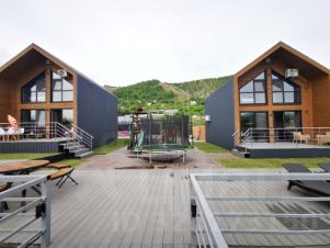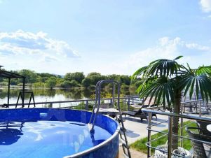 На территории: шезлонги, мангал и бассейн у каждого дома, банный чан, детская площадка, парковка на 4 машины перед воротами, собственный пляж, понтон.