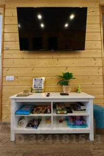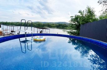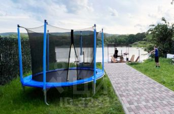На территории: бассейн, шезлонги, батут для детей, качели, мангальная зона с шампурами решёткой и казаном, баня, парковка на 10 машин перед воротами, понтон с которого можно купаться.