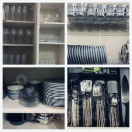 1. Гостиная с кухней ( со всеми столовыми приборами)
