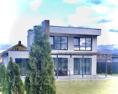 В доме находится сауна и бассейн с панорамными окнами и с выходом на газон.