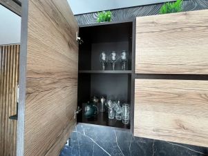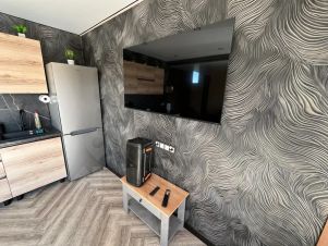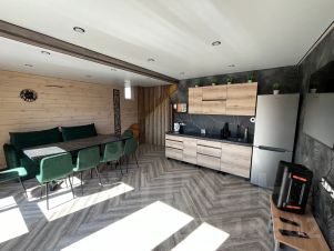 В кухне гостиной стол на 8 человек, есть вся необходимая посуда, микроволновка, чайник, плита, холодильник, музыкальная колонка, smart tv, wi-fi. Кондиционеры во всех комнатах.