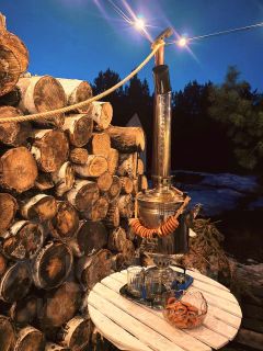 - травяной чай (душица, мята, чабрец, зверобой) в настоящем дровяном самоваре - 1 ,5 тр.