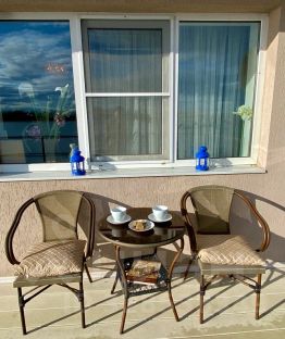 Солнечная терраса с видом на Волгу — идеальное место для завтрака или вечернего ужина или просто отдыха на воздухе
