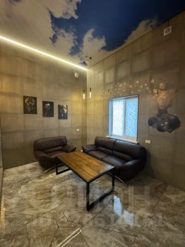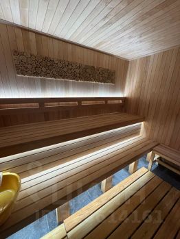 Зона бани с бассейном 50 кв. м: большой диван, стол журнальный, телевизор смарт тв. три банных больших полотенец
