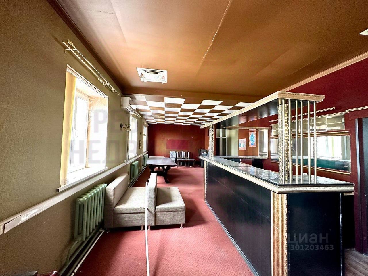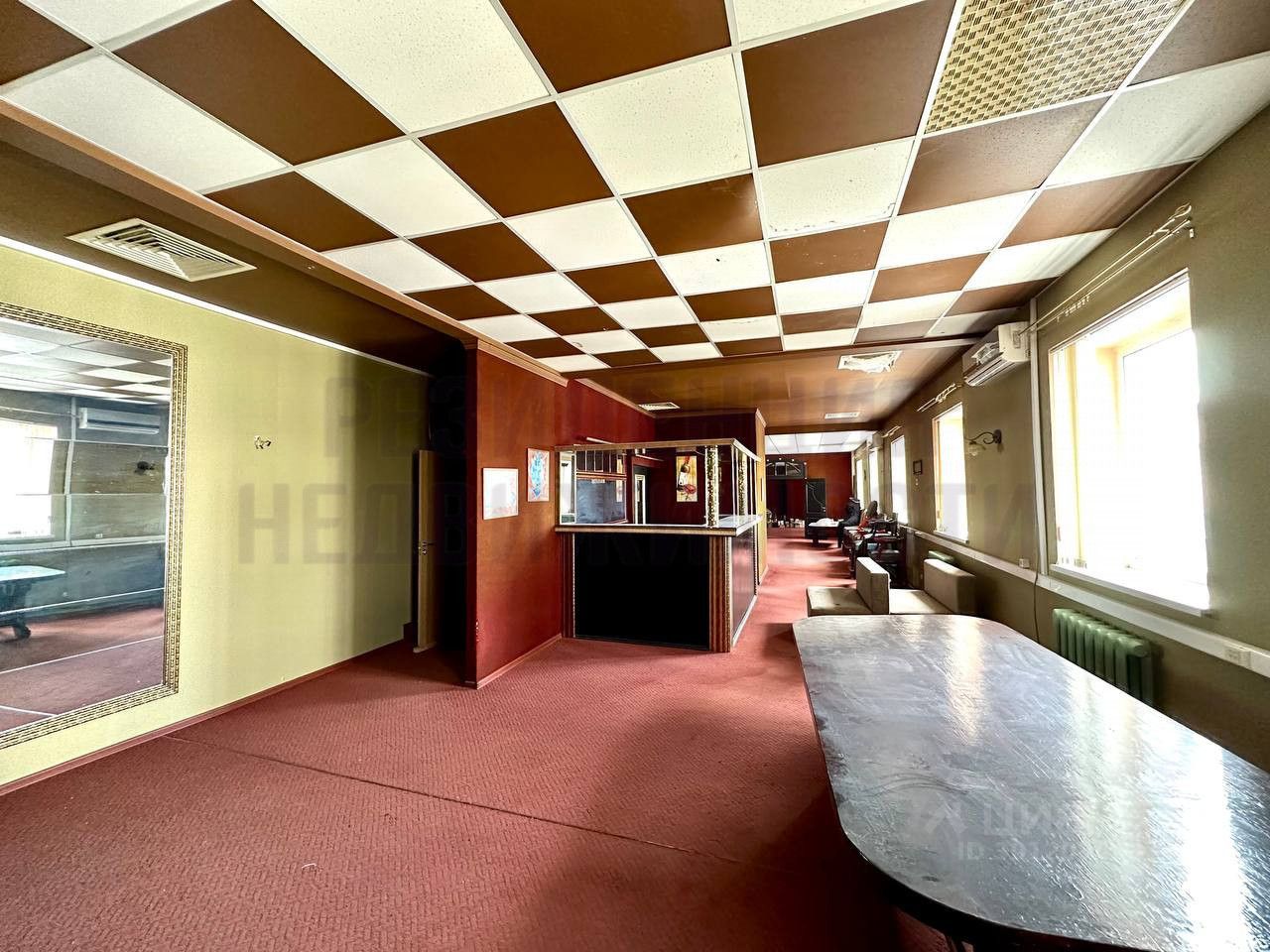 11 больших светлых окон вдоль всего помещения.