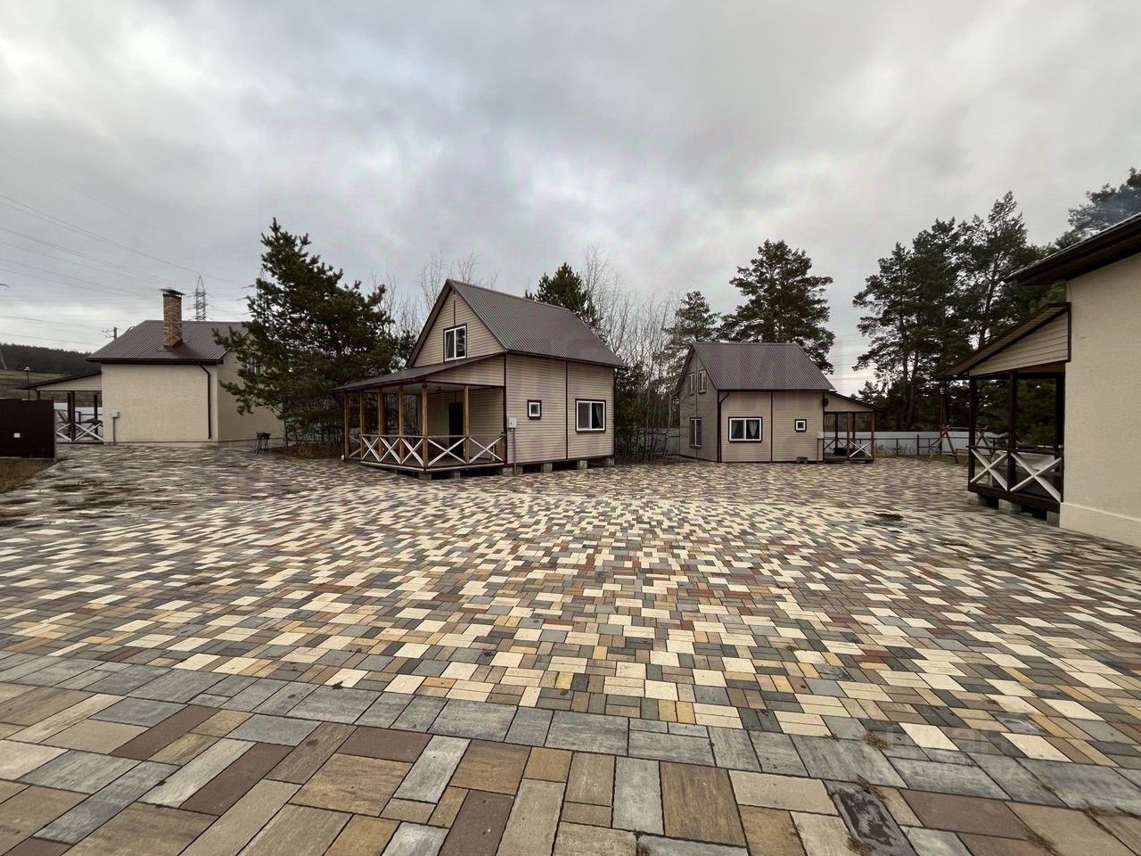 В собственности 8 всесезонных домов и 2 бани, упакованных "под ключ" по 57 и 72 кв м, к каждому прилагается терраса, зона барбекю, 3-4 комнаты, кухня-гостинная, сан.узел с душем.