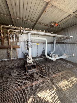 - Обвязанные между собой трубы на разборных фланцах с запорными кранами диаметром 86 мм.