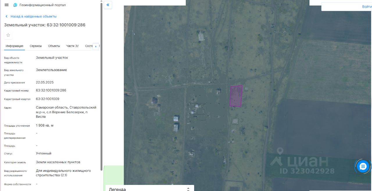 земельный участок, государственная собственность на который не разграничена с кадастровым номером 63:32:1001009:286, площадью 1908 кв.м. категория земель: земли населенных пунктов, вид разрешенного использования: для индивидуального жилищного строительства (2.1), расположенного по адресу: Российская Федерация, Самарская область, муниципальный район Ставропольский, сельское поселение Верхние Белозерки, поселок Висла