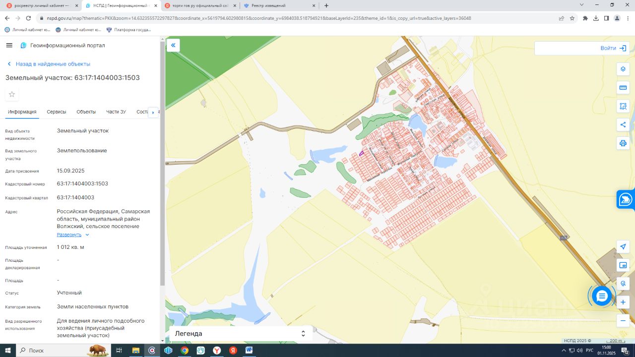 Земельный участок, площадью 1012,00 кв.м, отнесенный к землям населенных пунктов, имеющий вид разрешенного использования для ведения личного подсобного хозяйства (приусадебный земельный участок); кадастровый номер 63:17:1404003:1503, расположенный по адресу: Самарская область, Волжский район, с.п. Просвет, п. Просвет, ул. Южная, участок б/н.