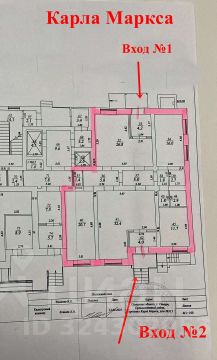 Помещение в черновой отделке: выполнена стяжка пола, штукатурка стен, заведена электрика, установлены приборы учета. Высота потолка 3,3 м. Две раздельные входные группы: со стороны Карла Маркса и со стороны частного сектора. На фасаде дома есть место под размещение вывесок и рекламы.