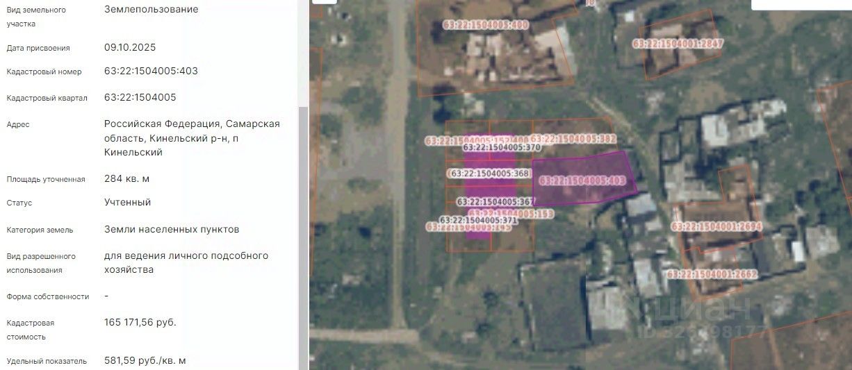 Российская Федерация, Самарская область, Кинельский р-н, п Кинельский вид разрешенного использования: для ведения личного подсобного хозяйства