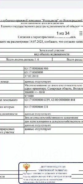 продаётся земельный участок для использования сельскохоэяйственного производства кадастровый 63:177:0000000:906