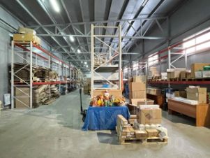 Отапливаемый склад с напольным покрытием, допускающим хранение как продуктов питания, так и медикаментов.