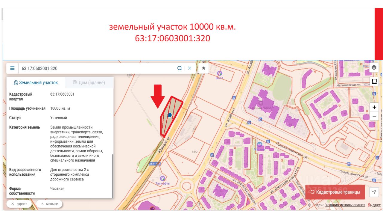 Кадастровый номер: 63:17:0603001:320.
