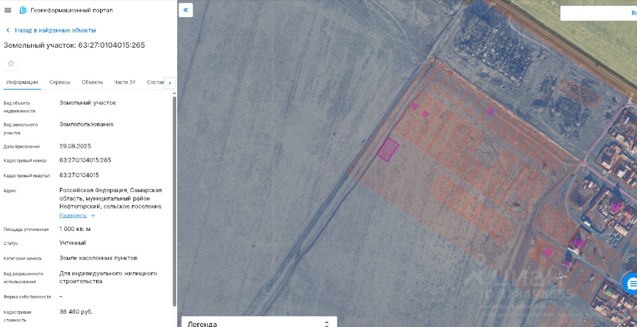 земельный участок, площадью 1000 кв.м., с кадастровым номером 63:27:0104015:265, земли населенных пунктов, расположенный по адресу: Российская Федерация, Самарская область, муниципальный район Нефтегорский, сельское поселение Дмитриевка, село Дмитриевка, Территориальный округ Дмитриевка, с видом разрешенного использования: для индивидуального жилищного строительства