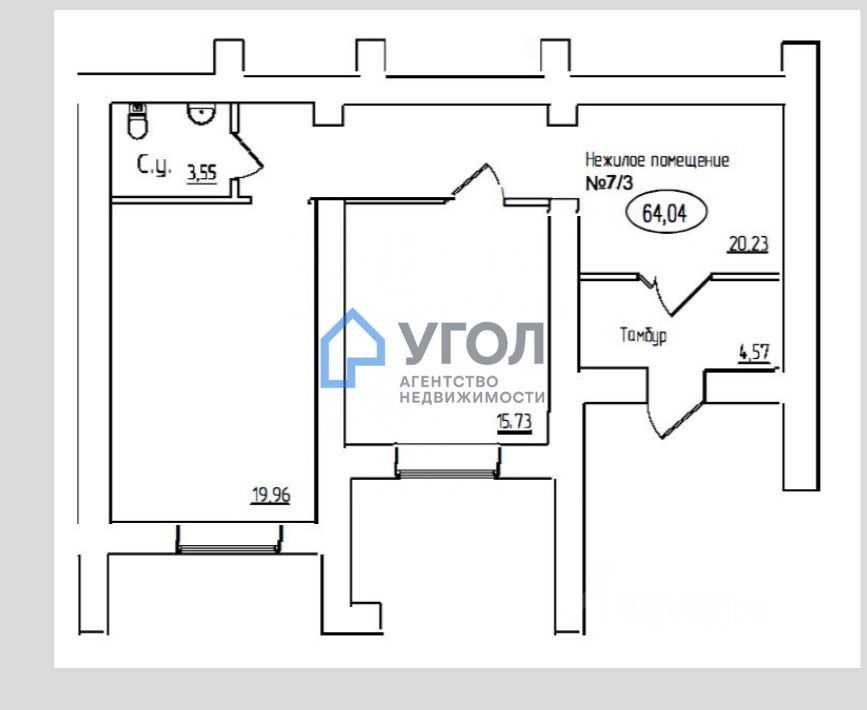 Продается трехкомнатное офисное помещение, первая линия, площадь 64,04 м2 на первом этаже современного нового 11 этажного дома, с большими окнами, отдельной входной группой и собственным санузлом.