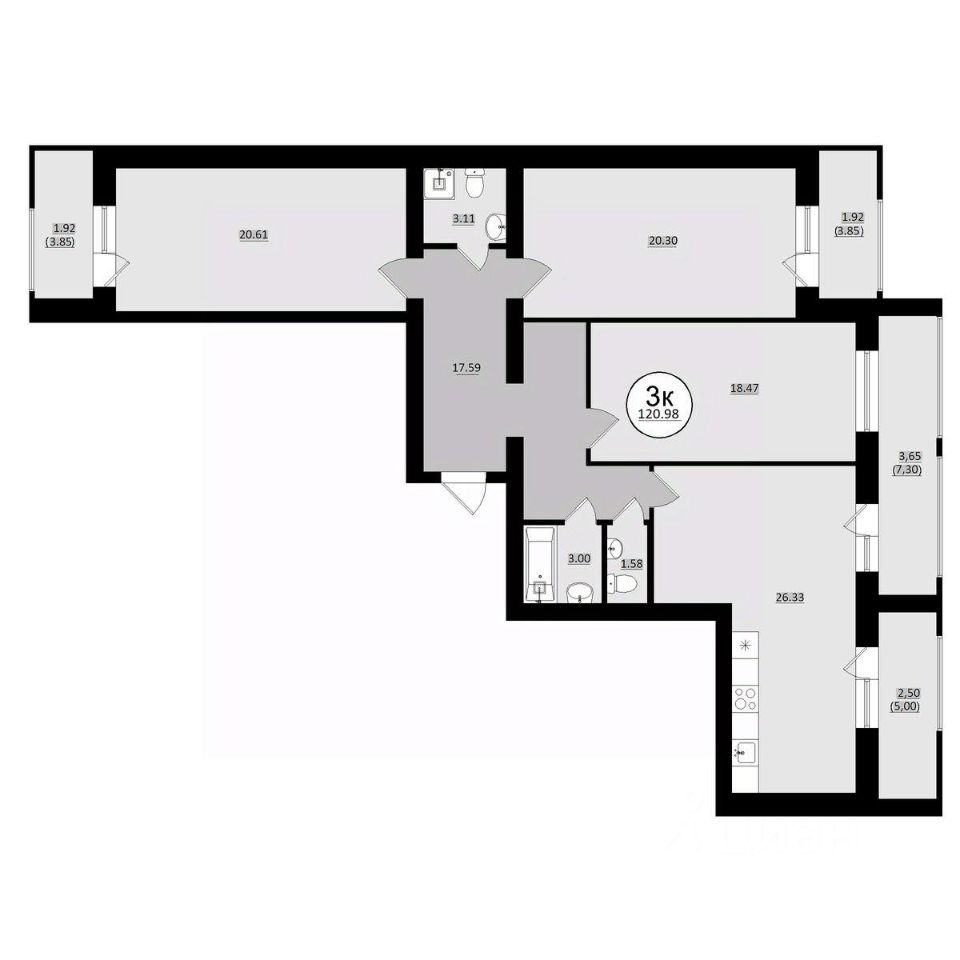 Общая площадь120,98 м²