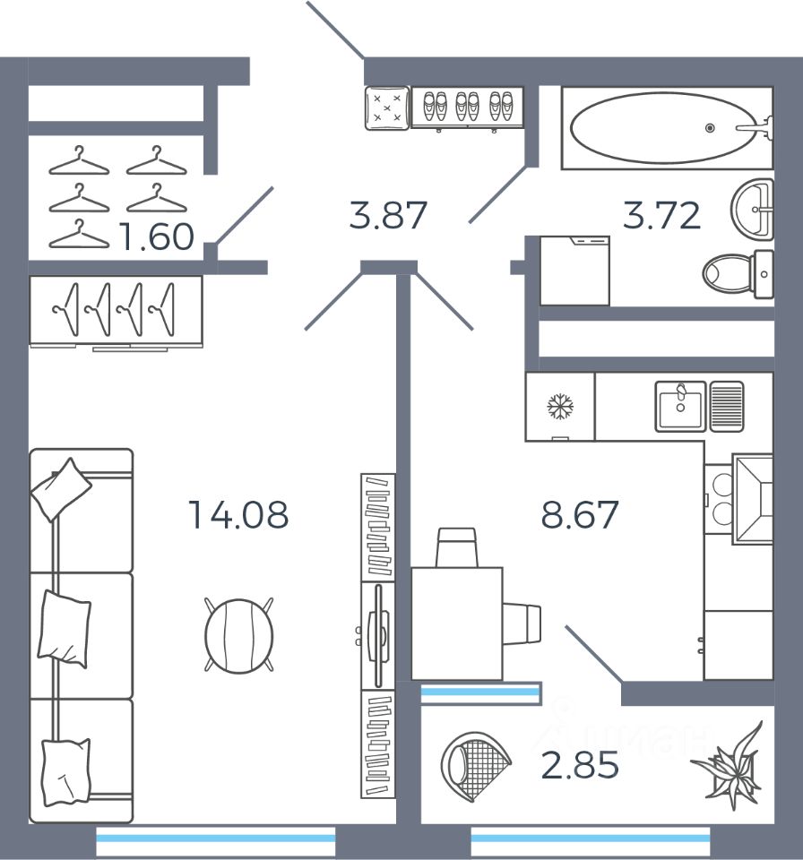 Общая площадь34,79 м²