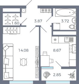 Жилая площадь14,1 м²