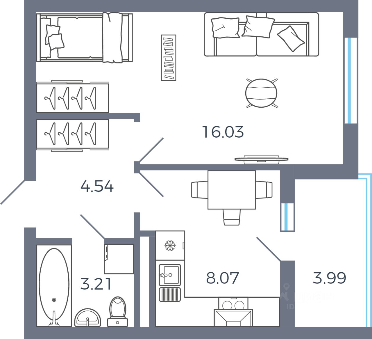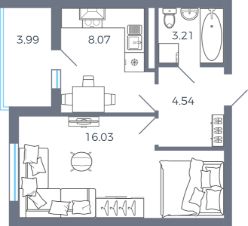 Общая площадь33,85 м²