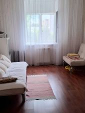 В квартире сделан качественный евроремонт, что создает уютную и современную обстановку. Комнаты светлые и просторные, с окнами, выходящими как на улицу, так и во двор. Совмещенный санузел современно оборудован. На кухне установлена вся необходимая техника, поэтому можно сразу готовить и наслаждаться комфортом. Балкон также застеклен и обустроен для отдыха.
