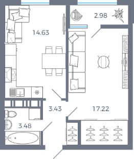 Общая площадь41,74 м²