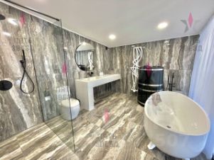 В квартире: отдельная кухня, большая гостиная со вторым светом и высоким потолком 6 метров и потрясающим видом на Волгу, гардеробная, постирочная, мастер спальная с душевой, кедровая бочка и ванной из которой также открывается вид на Волгу, 2 спальные комнаты в одной из которой есть гардеробная, гостевой санузел, ванная с душевой, спортивный зал с видом на Волгу. В квартире выполнен дизайнерский ремонт, использовались только самые дорогие и современные строительные материалы, немецкая мебель и техника.