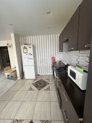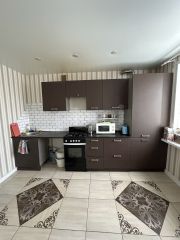 Современный ремонт выполнен с использованием качественных материалов, установлена новая функциональная мебель и бытовая техника, включая холодильник, стиральную машину и телевизор.