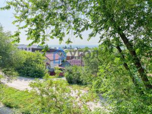 Панорамный вид из окна: кроны деревьев, просторы Советского района и река Самарка.