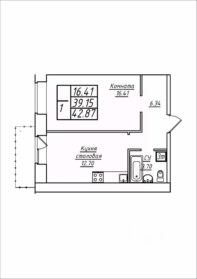 42,87 м²