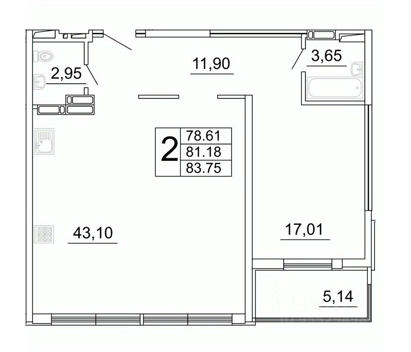 Продаётся 2 комнатная квартира 416 в строящемся жилом комплексе "Дом у Космопорта 2";.