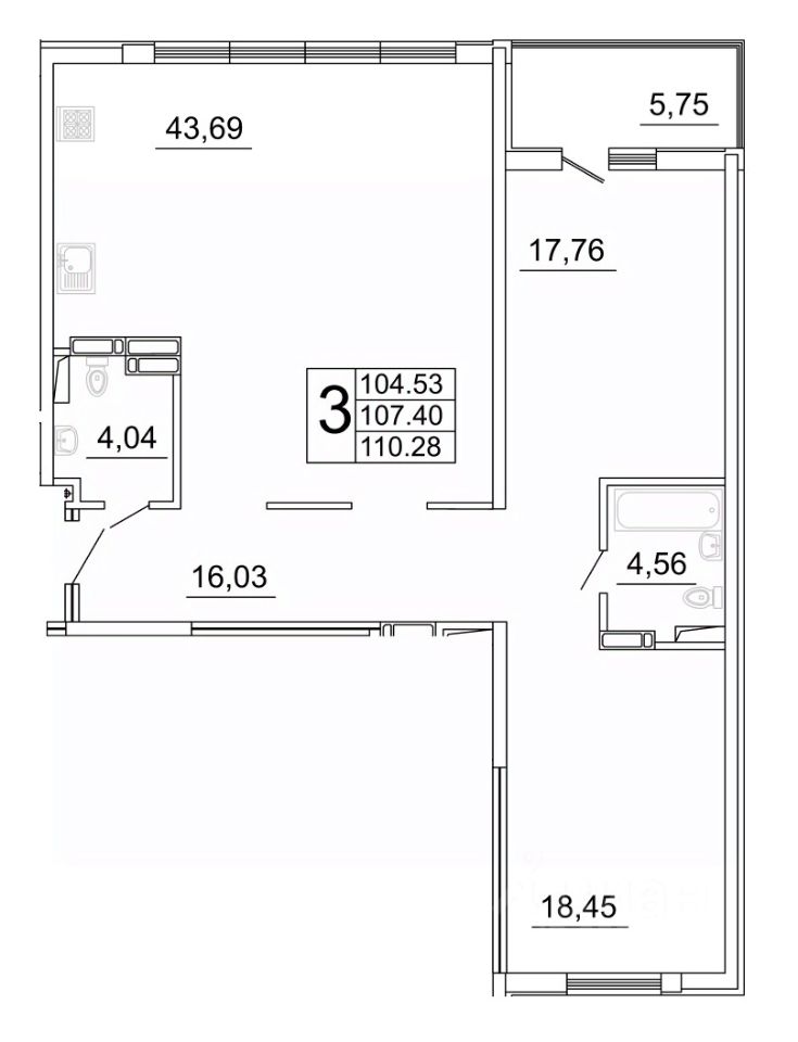 Продаётся 3 комнатная квартира 419 в строящемся жилом комплексе "Дом у Космопорта 2";.