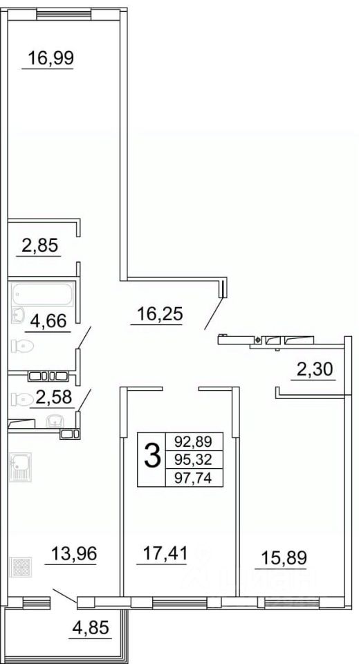Продаётся 3 комнатная квартира 13 в строящемся жилом комплексе "Дом у Космопорта 2" ;.