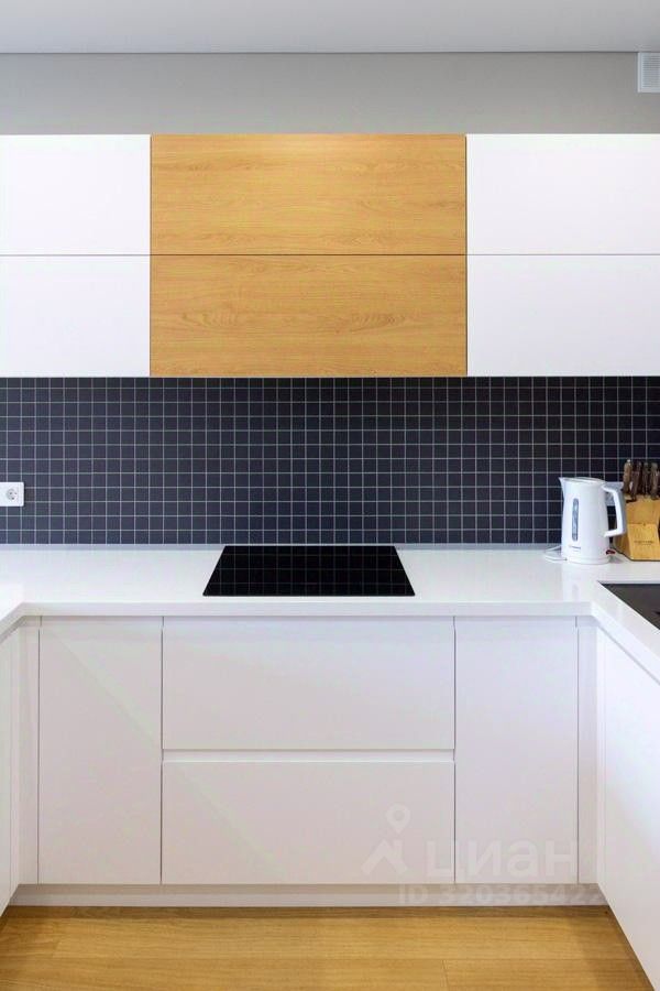 Встроенная кухня от компании ФЭД с фасадами EGGER и цельной столешницей. Полный комплект современной техники Bosch — посудомоечная машина, индукционная варочная панель, духовой шкаф, микроволновка. Холодильник и морозильная камера Liebherr, вытяжка и измельчитель пищевых отходов Evolution Insinkerator.