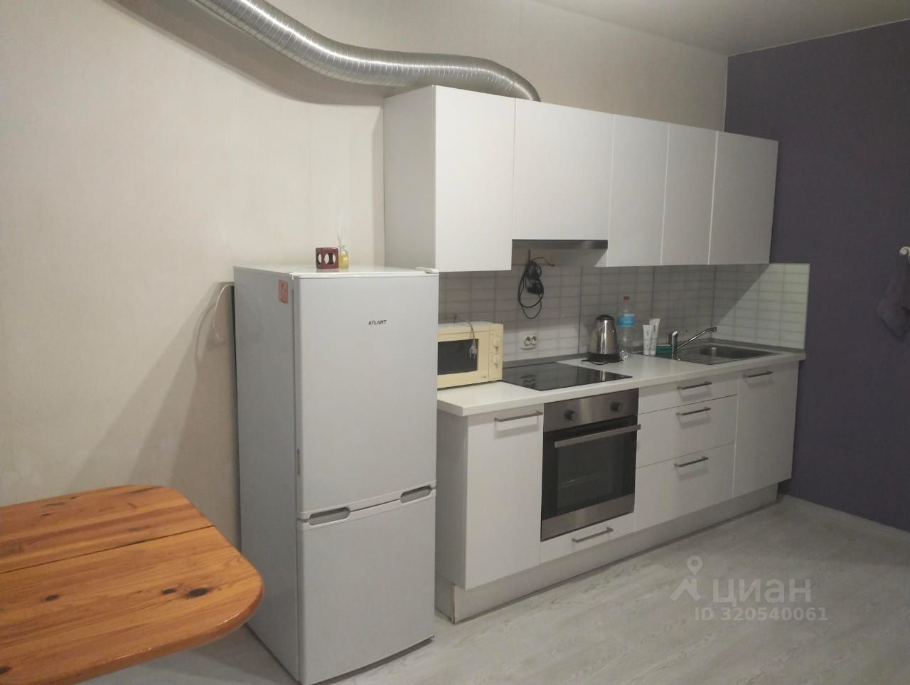 На кухне остаётся встроенный кухонный гарнитур, эл. плита, духовой шкаф, вытяжка,