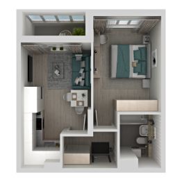 Умная планировка АМГРАД. НОВИНКА! Планировка впервые представлена в доме 5. В небольших квартирах эргономике уделяется особое внимание, поскольку на ограниченной площади нужно разместить все необходимое для комфортной жизни. В этой планировке кухонная зона размещена в нише, что позволяет более свободно использовать пространство комнаты, организовав тут полноценную гостиную со столовой зоной или барной стойкой (зависит от вашего стиля жизни). В спальне предусмотрено место под шкаф. В ванной комнате достаточно места для установки стиральной машины и организации системы хранения. В квартире есть дополнительное функциональное пространство - остекленная лоджия, выход на лоджию из кухни. В теплое время года она может стать кабинетом, мини-спортзалом, местом для отдыха и сезонного хранения. Особый комфорт проживанию, ощущение объема и света, добавят потолки высотой 3,3 м. Окна квартиры выходят в сторону детского сада.