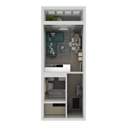 НОВАЯ умная планировка АМГРАД! Эксклюзивно представлена в доме 5. Квартира-студия максимально функциональна: ведь вы можете жить и работать, не выходя из квартиры, а в хорошую погоду организовать себе уютное рабочее место на территории закрытого благоустроенного двора. На компактной площади разместилось все, что нужно для комфортной жизни или работы. Комната правильной прямоугольной формы с удачно расположенным дверным проемом позволяет организовать кухню-нишу, отделенную от зоны отдыха барной стойкой или обеденным столом. Входная зона прихожей отделена от жилой, здесь есть место под гардеробную. В санузле предусмотрено место для установки стиральной машины. Просторная остекленная лоджия - дополнительное функциональное пространство, которое в теплое время года может стать кабинетом, комнатой переговоров, мини-спортзалом, местом для отдыха и сезонного хранения. На некоторых этажах предусмотрено панорамное остекление. Окна квартиры выходят на территорию детского сада.
