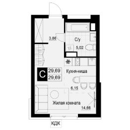 Компактная квартира-студия — пространство продуманной планировки с грамотным зонированием. В студии прекрасно сочетаются места для отдыха, работы и организации вместительной встроенной системы хранения. Окна выходят в уютный двор, открывая вид на благоустроенную территорию. Просторный совмещенный санузел позволяет разместить не только полноценную ванну, стиральную машину, а также модули для хранения. Отсутствие лоджии компенсируется дополнительными квадратными метрами, которые можно использовать как для хранения вещей, так и для организации места отдыха. На компактной площади разместится все, что нужно для комфортной жизни.