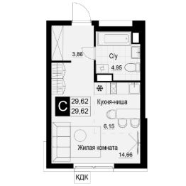 Компактная квартира-студия — пространство продуманной планировки с грамотным зонированием. В студии прекрасно сочетаются места для отдыха, работы и организации вместительной встроенной системы хранения. Окна выходят в уютный двор, открывая вид на благоустроенную территорию.