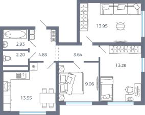 Общая площадь63,44 м²